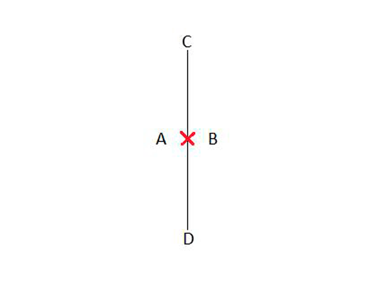 En el diagrama el estudiante está en la posición preparatoria parado en la línea AB, de frente hacia D.