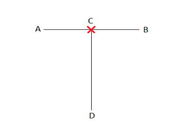 En el diagrama el estudiante está en la posición preparatoria parado en la línea AB, de frente hacia D.
